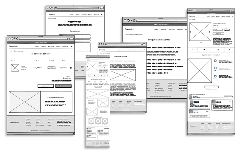 This was one of the most important aspects of the project, as in all the projects, the client wanted previous approval of the project in wireframes to be able to start the design of the mockups. The inconvenient in this specific project is that while they were being carried out, the client changed his opinion about his references and proposed different things to the previously established requirements.